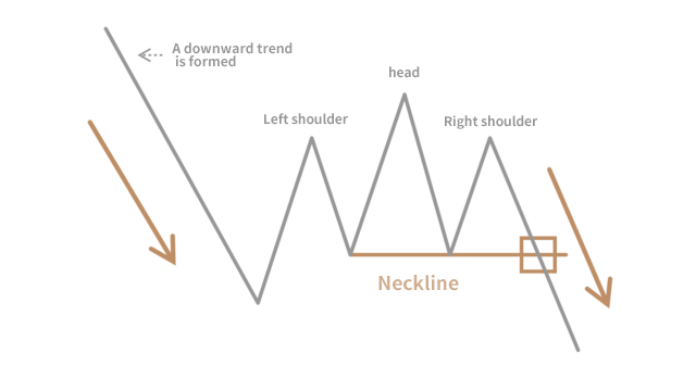 When trading using the head and shoulders pattern, the price is expected to fall below the neckline. It is suitable to open a short position when the head and shoulder top pattern is completed and the price falls below the neckline and continues downward. Measuring the distance from the head Peak to the neckline can calculate the trading profit target.
